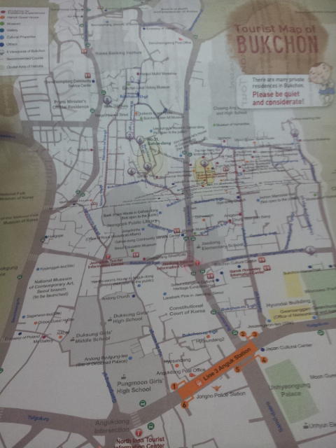 How to go Bukchon Traditional Village. Go to Anguk Station (Line 6, Orange), take Exit 2 then walk straight ahead until you find the Tourist Information Center where you can get a map and start your walk around the place. I went there on a weekday so place was less crowded.
