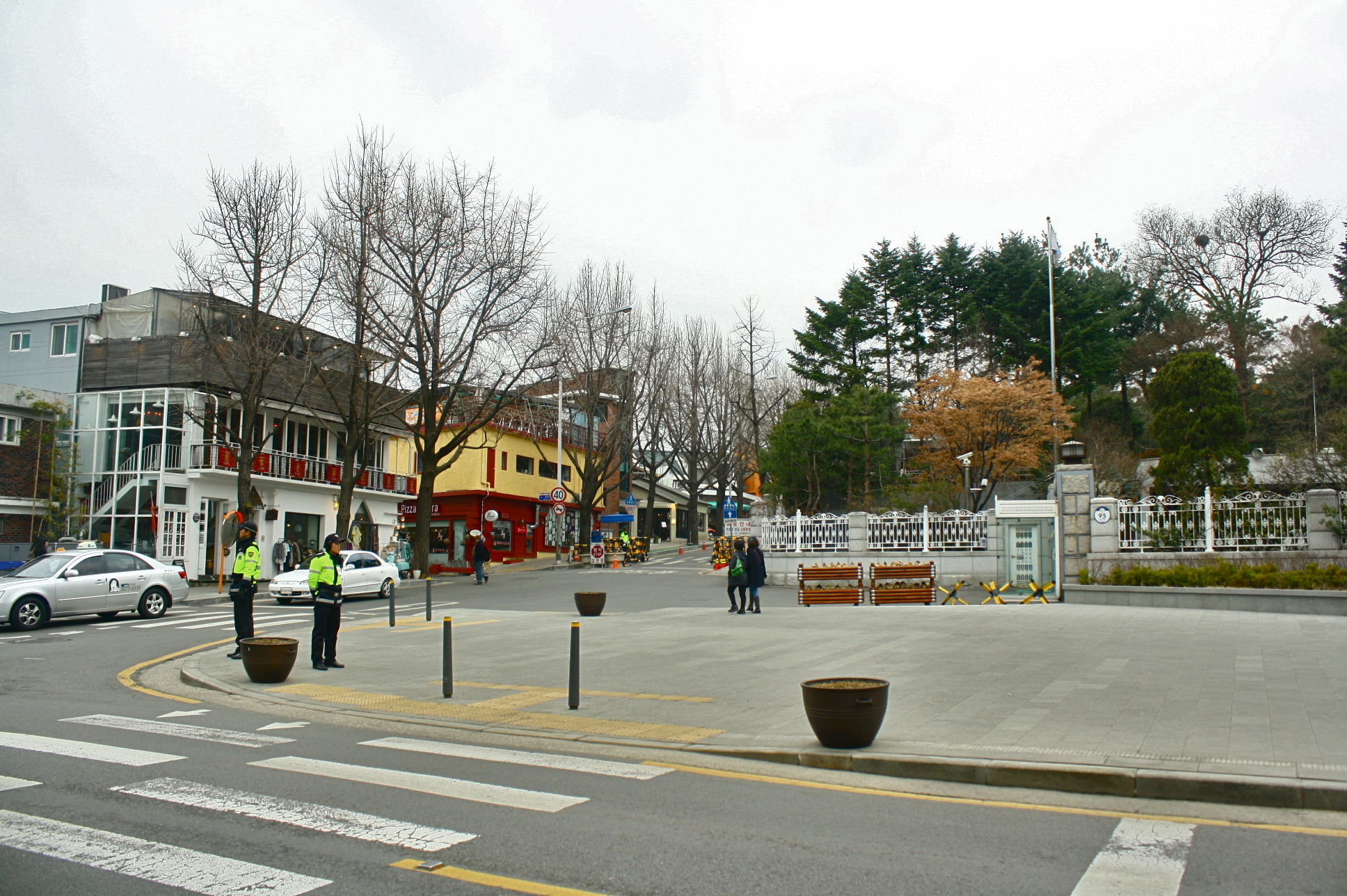When I finally found my way down with the stairs I found after the well, I was in a completely different place. It seemed like really on the other side of Bukchon. Going back was again not an option so I just walked around, hoping that I would see a subway station somewhere. When I gave up, I asked one of the officers and he told me that nearest station is Gwanghwamun and it is a 10-minute walk. Conversation went like this :