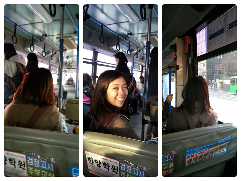 It was about a quarter past 5 when I started walking again to UNESCO Building where I was supposed to meet my Tito and Tita. I waited there for a few minutes just people-watching. Then off we were to an activity I find exciting – riding the bus! I always been less scared to take the subway because the trips are anytime and there are signs in English but I was so scared with the bus. I do not know about the tapping of the card, the stops, the bus colors or which colors lead to where. It was strange I know but the bus ride is one of the many things I want to experience in Seoul.