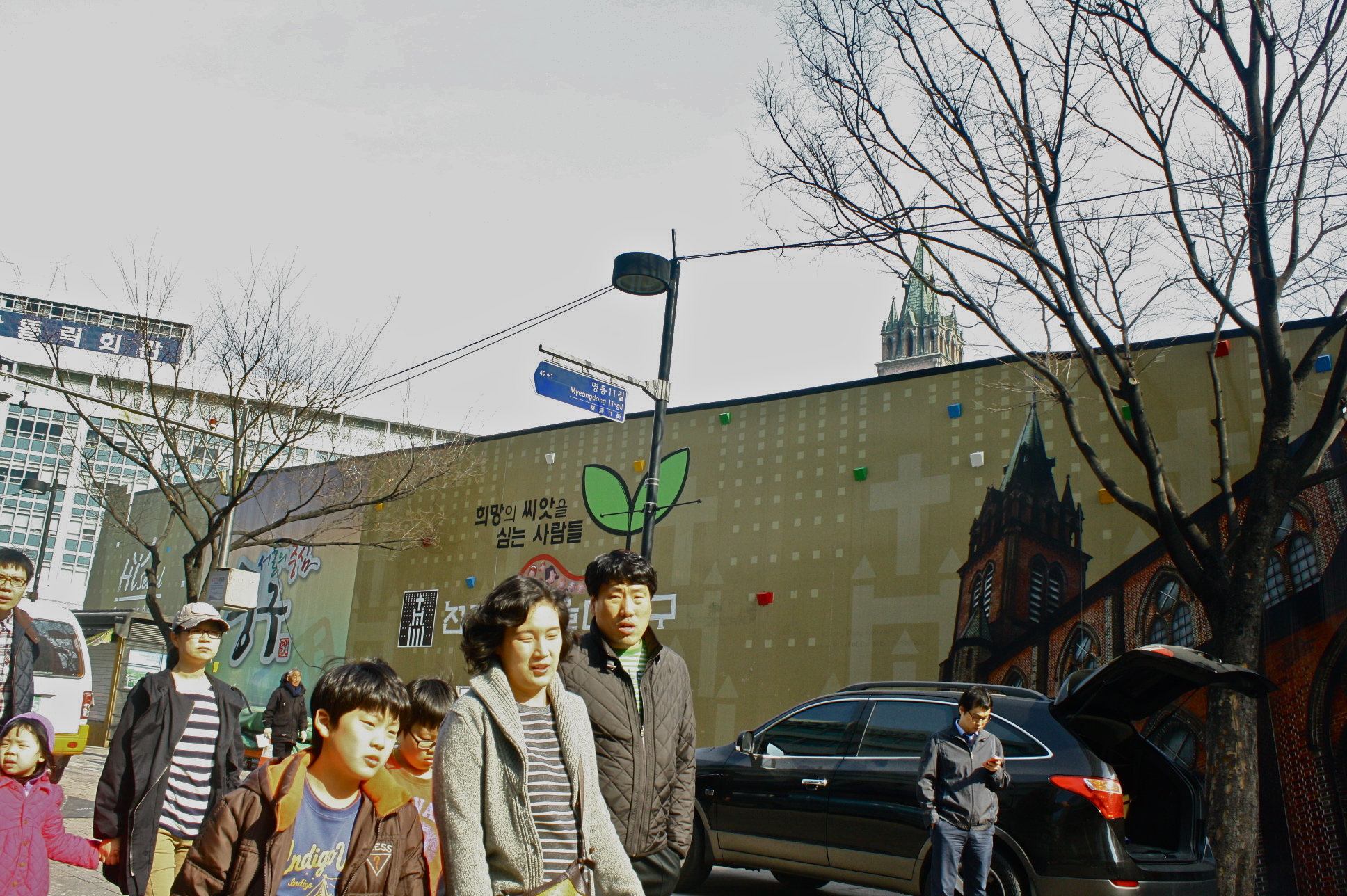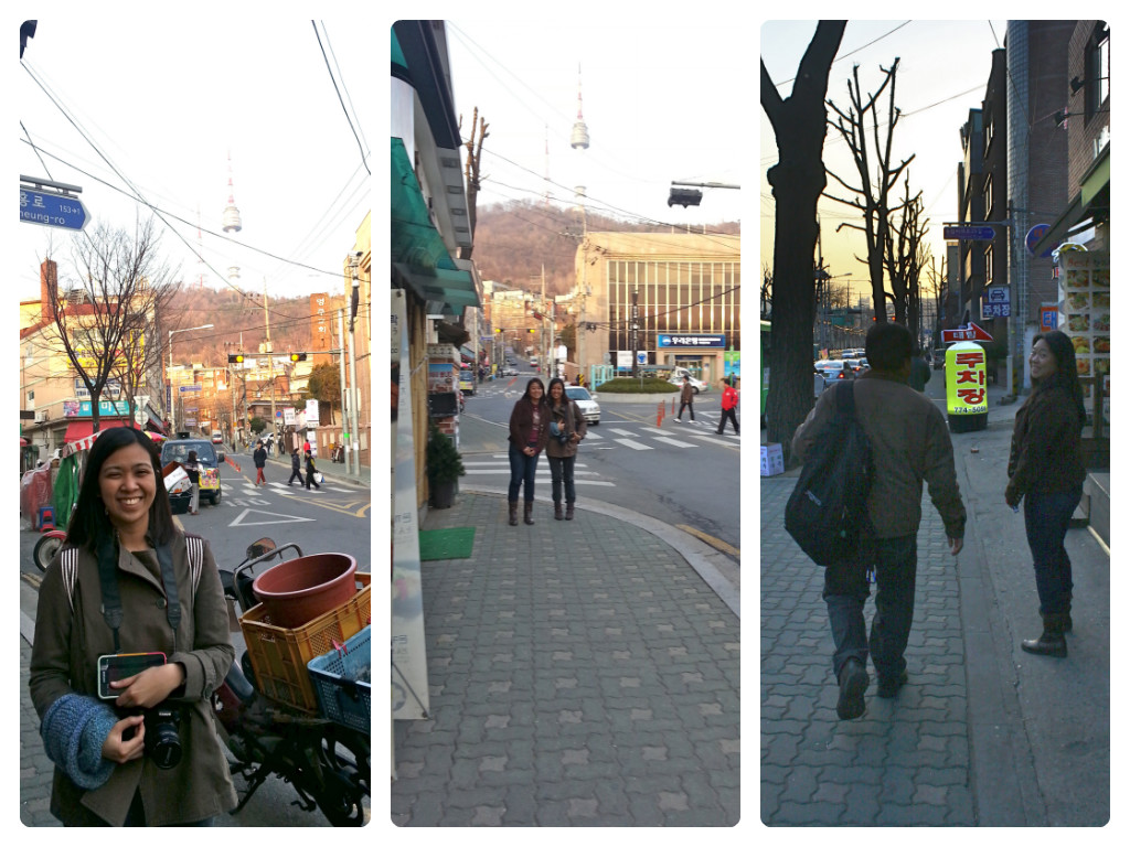 Namsan Tower everywhere! (L-R : From one of Myeongdong’s streets, Inside the cathedral compound, From where our bus stopped in Yongsan)