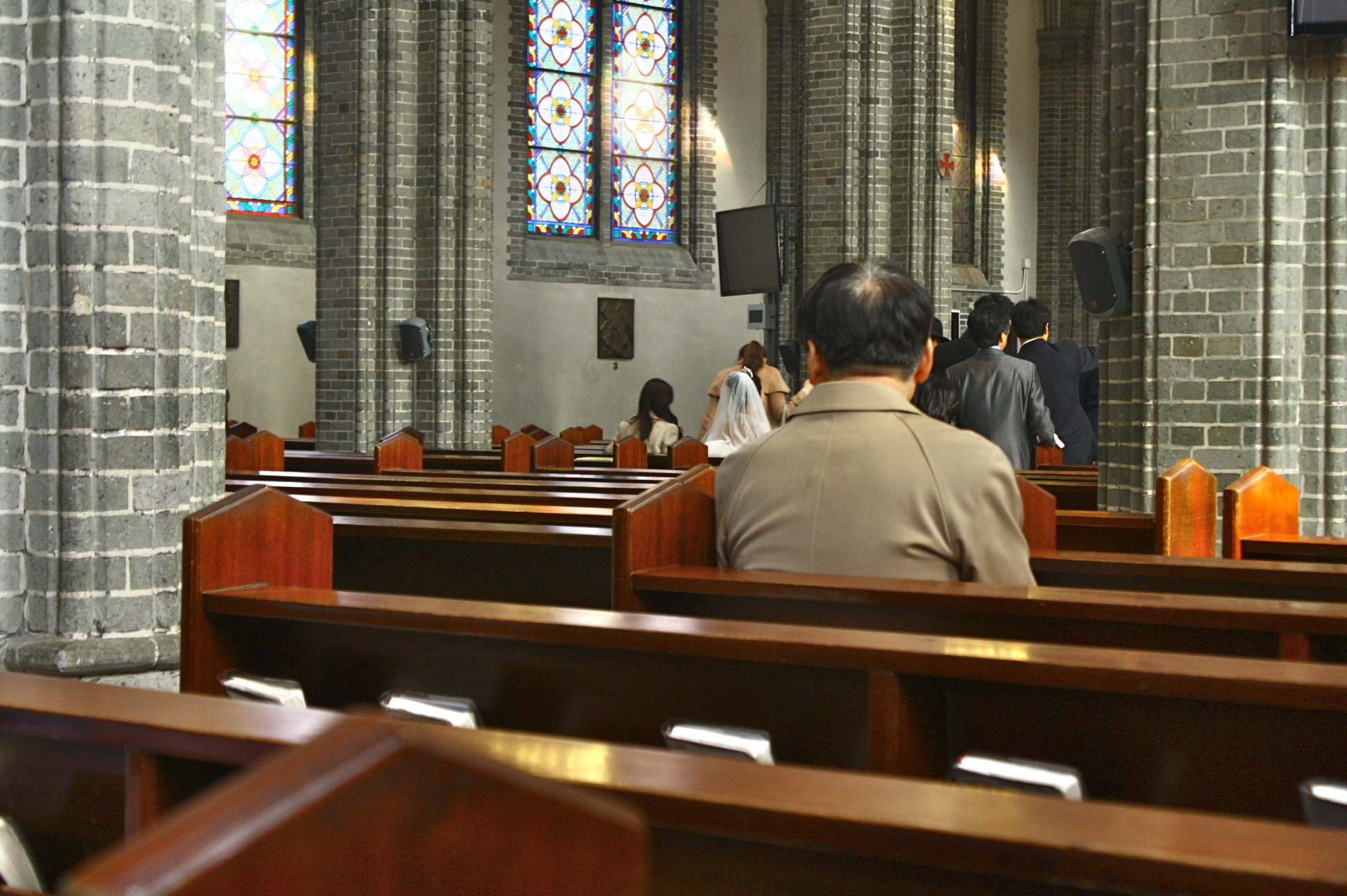 I specifically like the high ceiling and the long aisle. The latter is really one of the first things I notice when going inside a church because I like to imagine brides walking on that aisle while the groom waits for her. (Haha I am still a hopeless romantic!) And I was lucky because I think there was a wedding on that day because I saw a bride. However, unlike the weddings I am used to where the bride walk toward the altar is a big deal, the bride just came inside. Later on, I realized that it may be because in Korea, the wedding happens not in the Church but in a wedding hall. But still, I was just happy to see a bride!