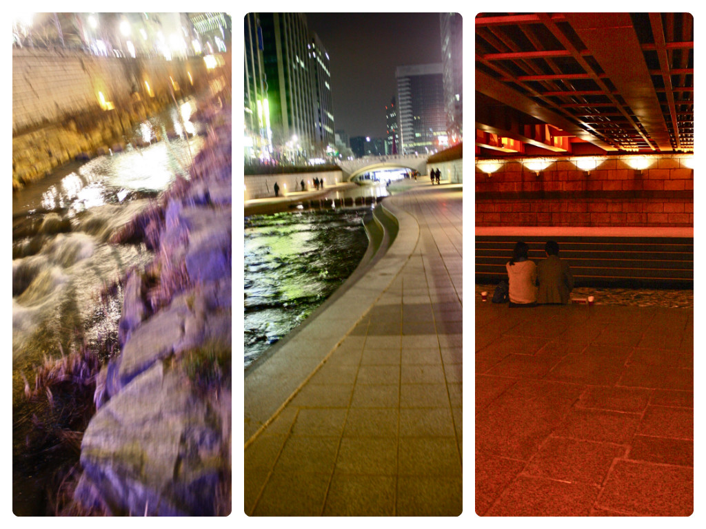 After resting for a while, we took a cab to to Cheonggyecheon Stream. We started from the end of the stream, which is near their office, if I remember correctly, near Dongdaemun. It was cold that night and it was quite a long walk but I had fun walking while chatting and taking pictures with Tito Randy and Tita Judith and watching people, even locals (mostly lovers) take photos as well. I just had to keep my then already freezing hands inside my coat’s pockets.