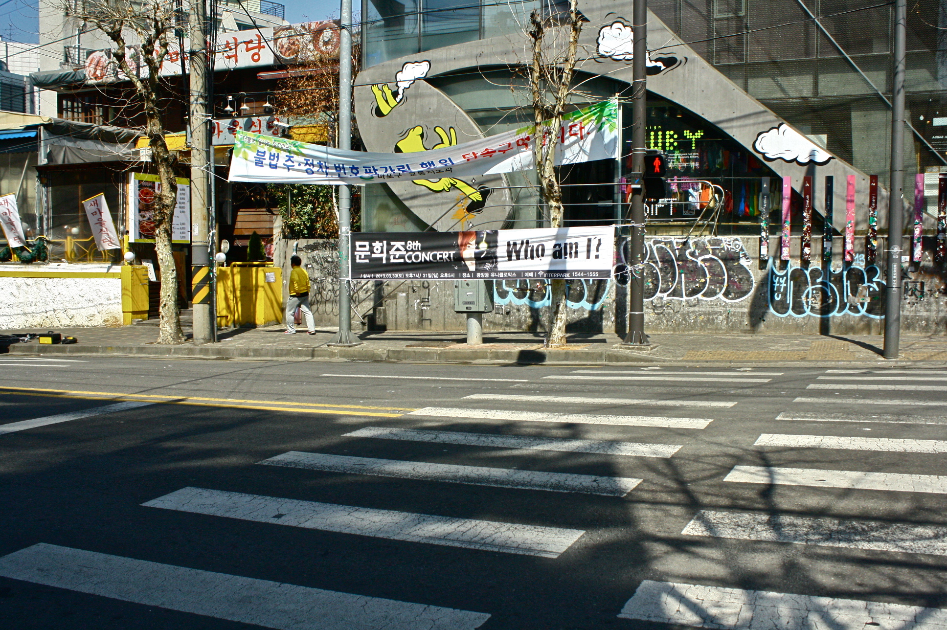 After Lazy Cat, I targeted to be back at Hongdae and I could not remember how but somehow, I managed to be back there. I did more walking, passed by more interesting grafitti in Hapjeong, finally was able to buy my friend’s Binch in two convenience stores (yes two! because the first one I went to had only one left haha), found myself a really cute cat necklace and tried fish cake from a stall with a kind vendor. I am pretty sure he could not understand English but he tried his best to tell me how to eat odeng, i.e. that I have to put in that sauce/dip. He seemed to me like a really warm person