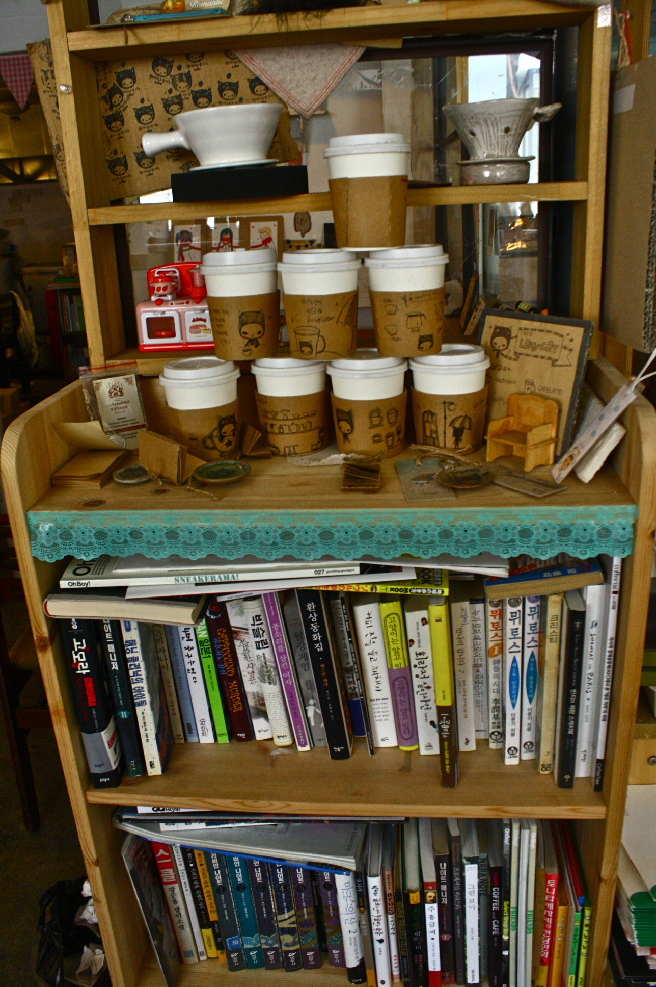 So I found my spot in a corner, drank and from time to time, was taking pictures of the place when the owner came near me. I had to ask of course whether it was OK to take pictures and she said it was OK. She sat down beside me and we talked. Though I intend to travel solo, I rarely speak with other people or in other words, try to be friendly. But I just had positive feelings about the owner because she seemed nice that without intending too, I can say that I met a new friend. Language was a barrier of course but we chatted for some time. She talked about her life in general, what keeps her busy, about her hometown, her love for photography and that she actually has a cat with a name similar-sounding to mine – Taeng Gu / 탱구.