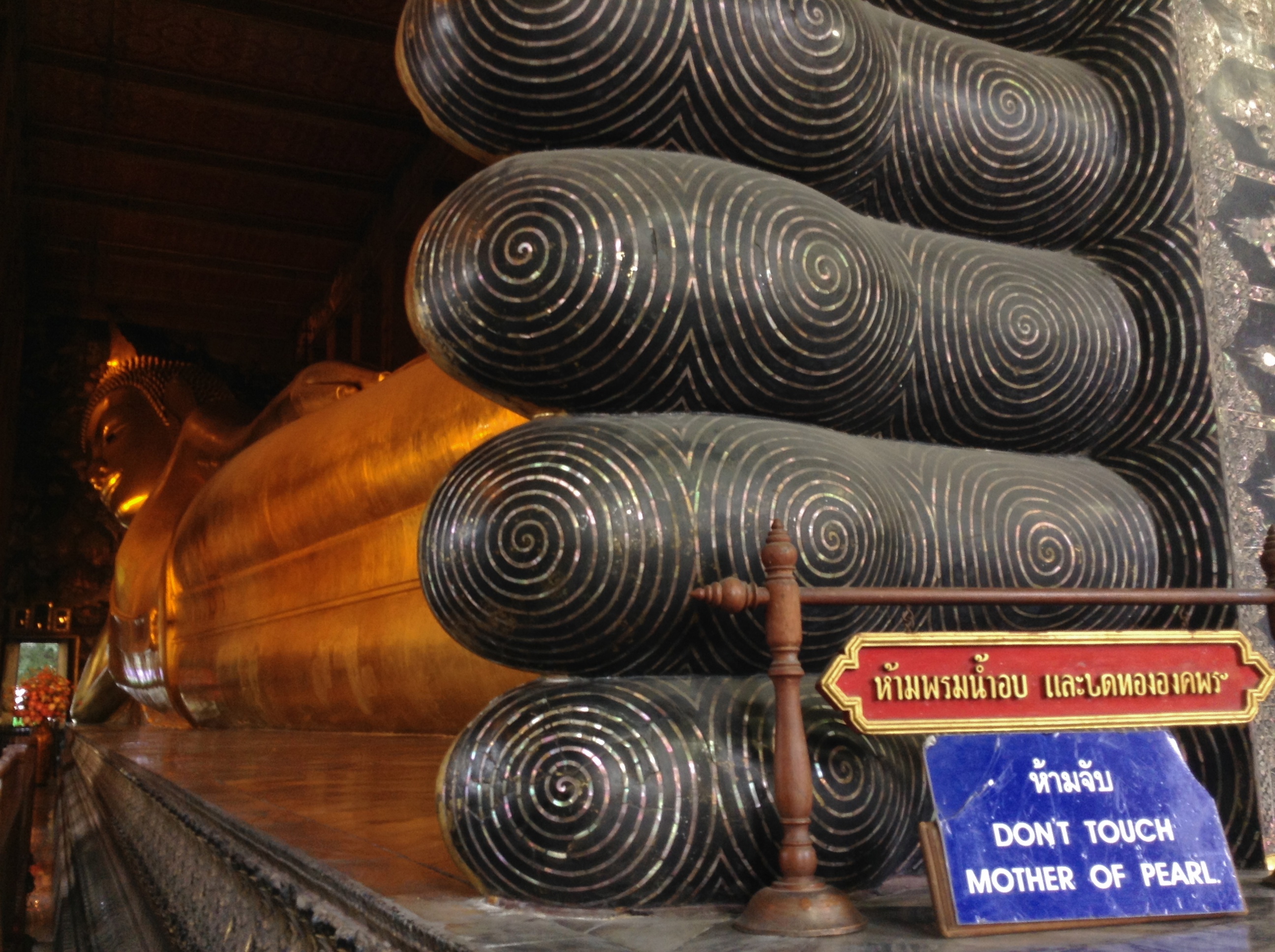 Funny comment from a stranger who approached me “Excuse me, but it says here ‘Mother of Pearl’. But where is Mother of Pearl?”. To which I replied, “I don’t know. Maybe it is somewhere in the Buddha”. Lame answer alert.