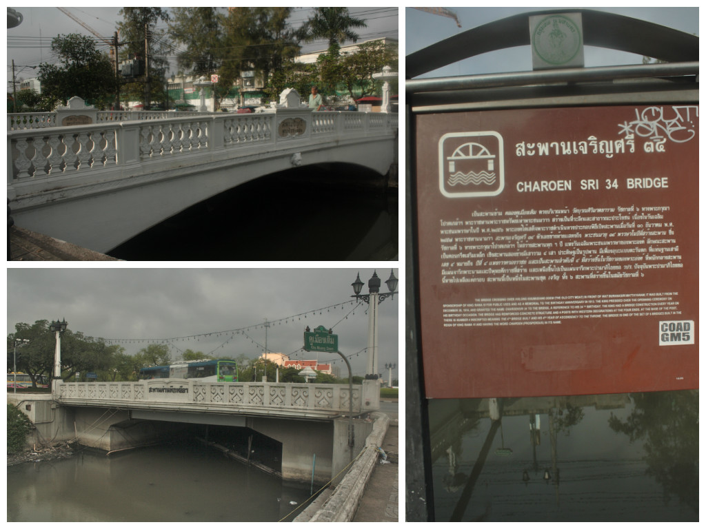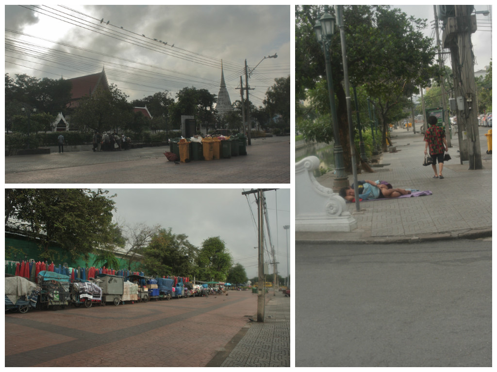 After breakfast, I decided to go back to that intersection I was crossing to get to my landmark Sanam Luang and explore a tad of the area, especially having remembered my afternoons googling and marking spots near my inn that were maybe worth a visit. My semi-aimless walking led me to these quiet streets. It is maybe again the depressing side of my self but I liked the site. There were abandoned stalls or carts, homeless people sleeping and garbage-hunting and this unexpectedly historically important mini-bridge with a murky stream that flows underneath it.