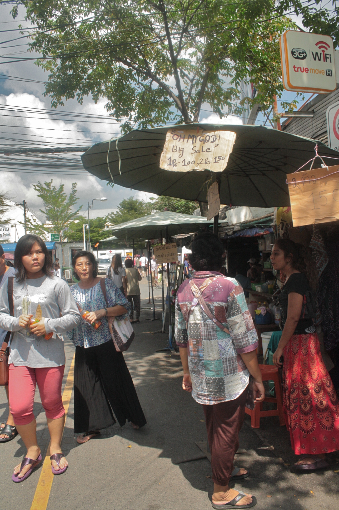 More food stalls. Cart on lower left sells those salads by the plastic bag. And of course, your usual barbecue on stick on the right.