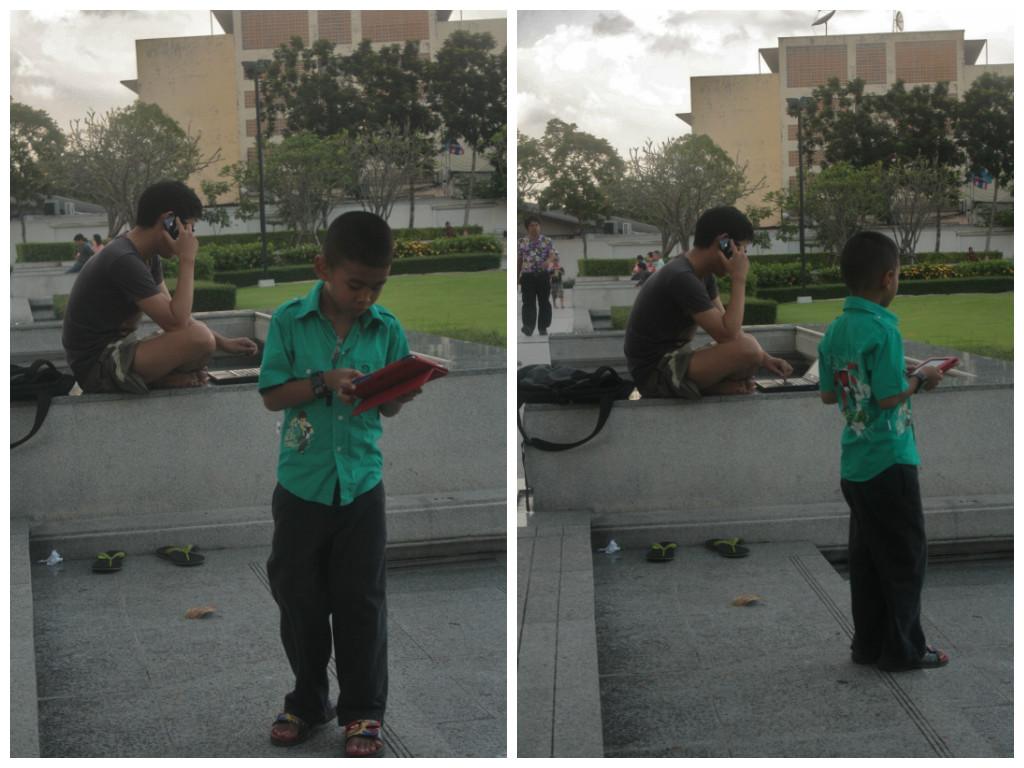 A habit I noticed among Thais is how they use those magnifying lenses to scrutinize those small pieces of tiles. I shall Google later what those are.
