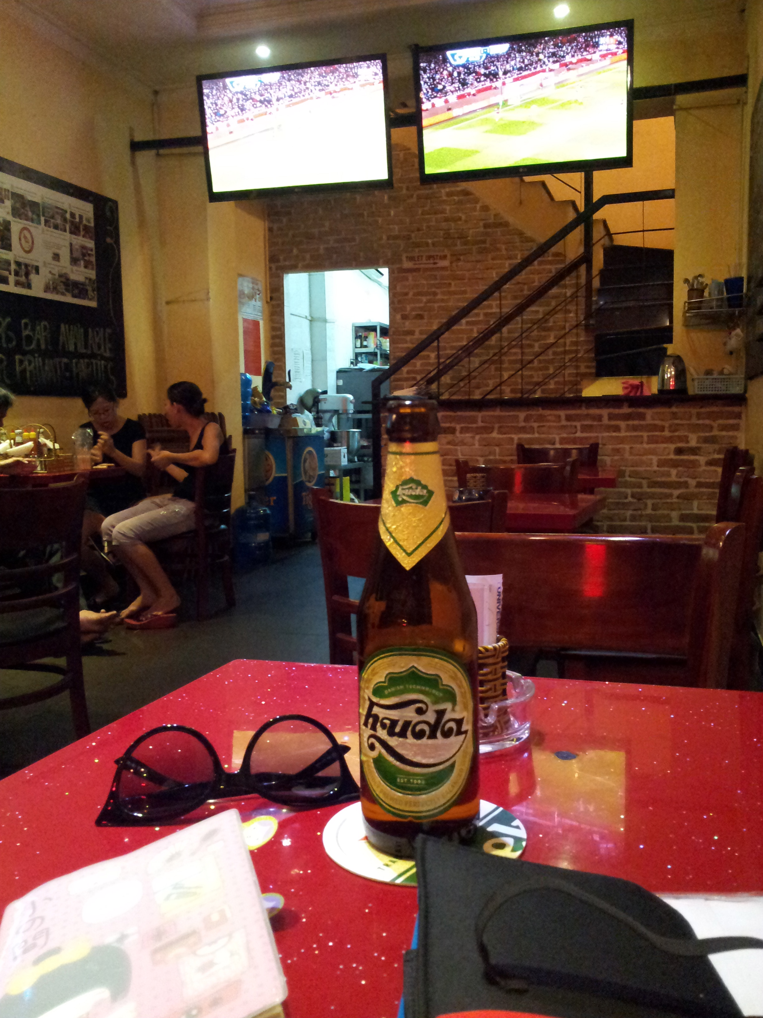 I just grabbed my first Vietnamese beer – a Huda, some comfort food and another bottle of beer. When I reached that point of acceptance that I can no longer keep self awake by drinking and eating, I decided to take a nap. The owner and crew did not seem to mind. I guess they are used to guests transforming their bar into an interim hostel.