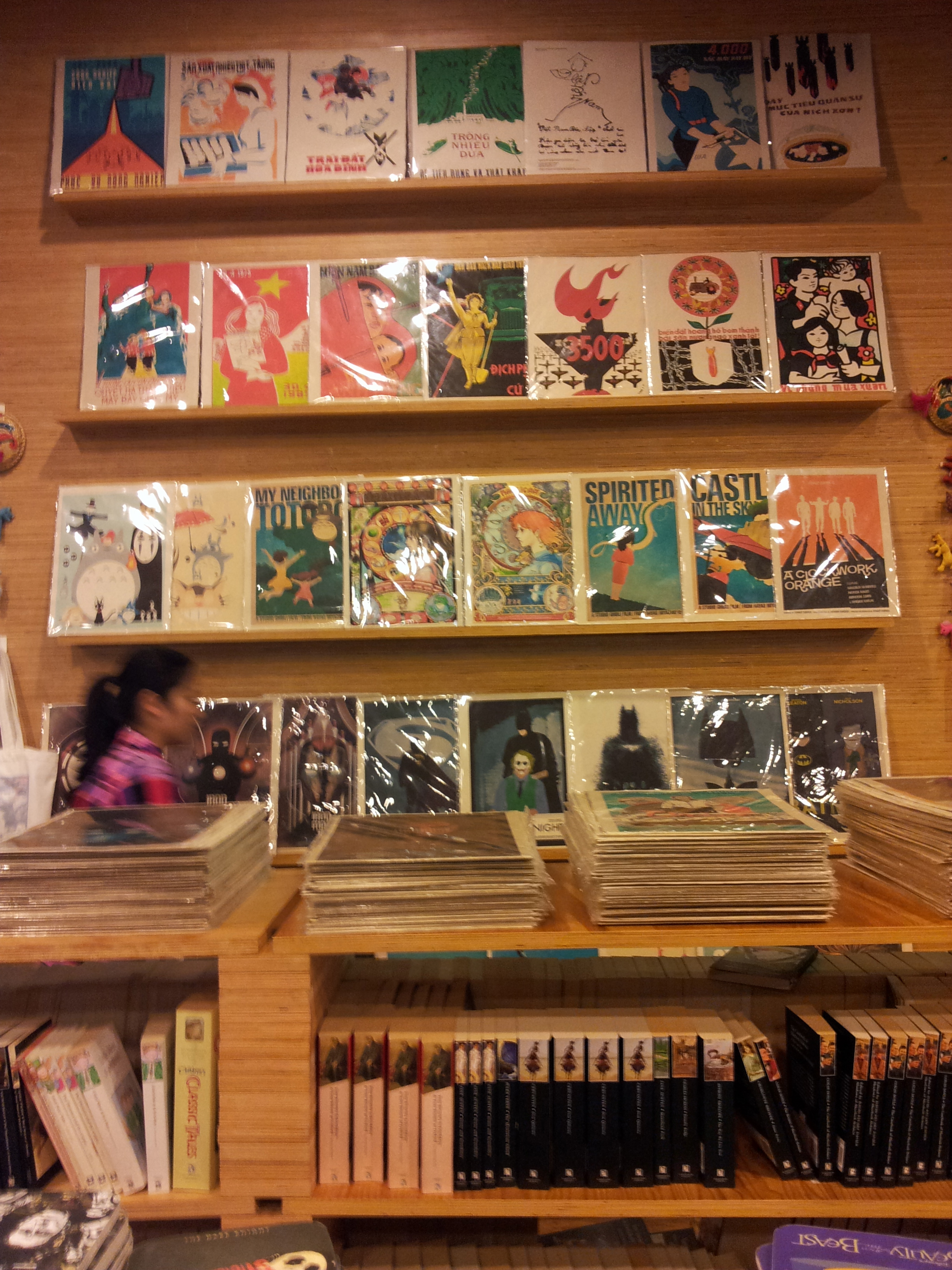 Literally beside the cathedral is the post office which also housed various several souvenir shops. Am kind of thankful to that as I was forced to stay there longer than planned because it was raining that kind of rain I cannot ‘compete’ with. When there was downgrade to drizzle, I started walking, aiming for Opera House. I asked a lady vendor who told me this good news that I just had to walk straight along this Dong Khoi Street. On my way to Opera House found this gem of a bookstore where I bought those posters that I was curious about since I saw in the museum (but not yet curious enough to buy). Called TRI (To Read Intellectually), it carried posters and coasters from many kinds of films. I was quite in happy panic that I was given this list of options in a binder.