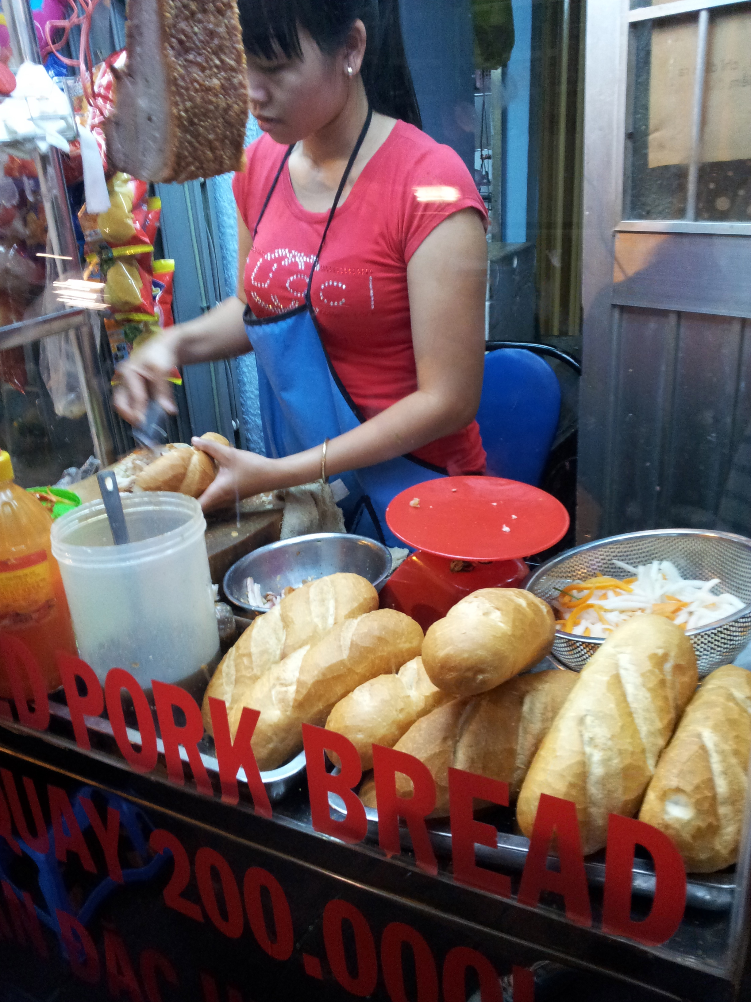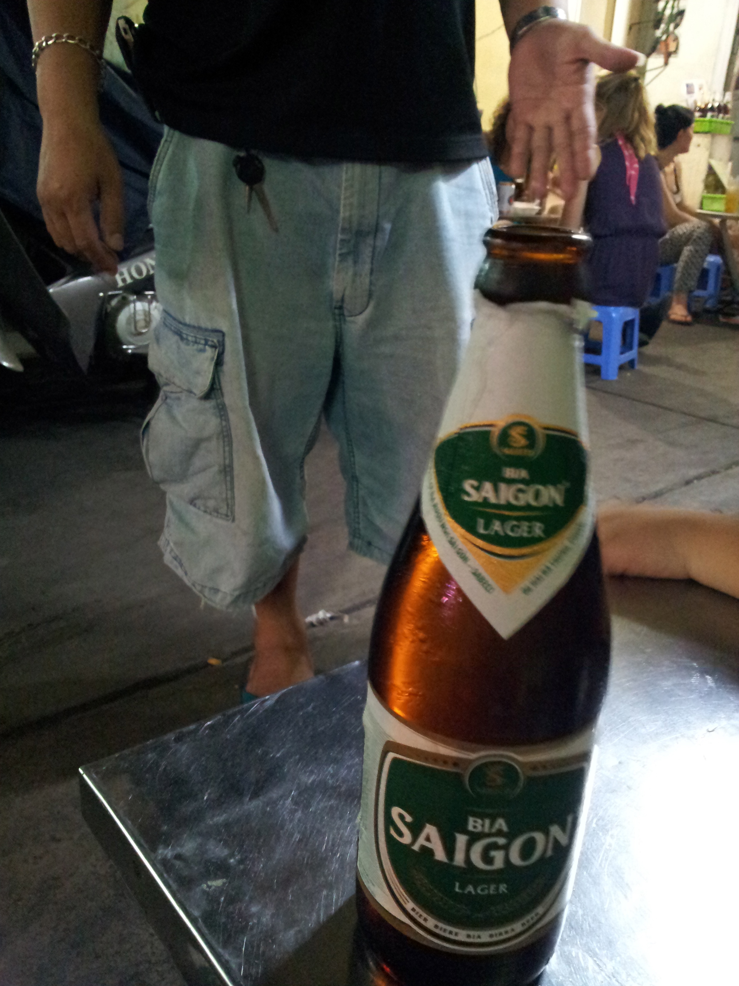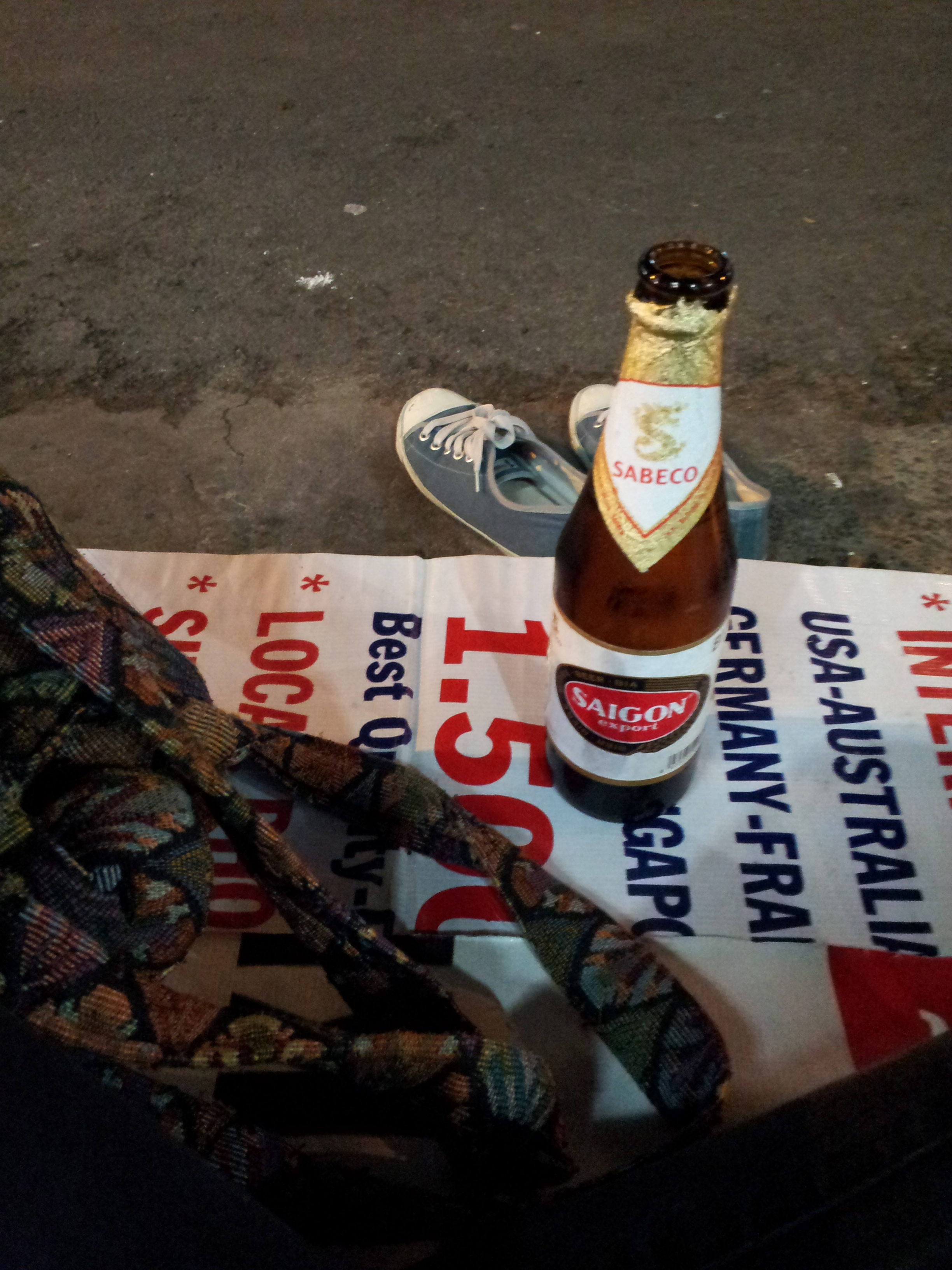 It was my favorite time of day when I found my spot and had my first bottle of Saigon Beer (the red one first) along Beer Street. There were plastic chairs the previous night but it was a different set-up that day when they laid out tarps for people to sit on. It was plan to try every kind of beer and with little confidence, think that self can actually discern difference. Next I tried was this light version – the green one – and because I wanted to try different places too – found this spot in one of the ‘inuman’ near my hostel. Downed my second bottle there while this little girl eats her evening snack as if I don’t exist. Busied myself staring and being all interested at whereabouts of this dog called Y (if I remember correctly Jang in Vietnamese) that I was taking his photos and locals then started fondly talking to me “oh you took his picture”. Even the other tourists on this table started this small talk about my mobile phone.