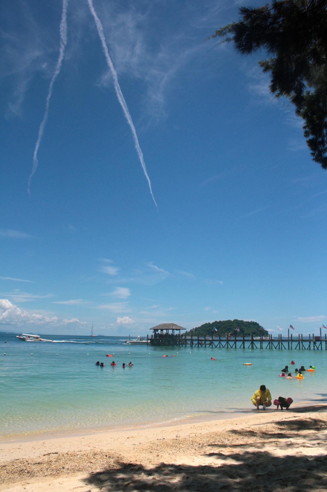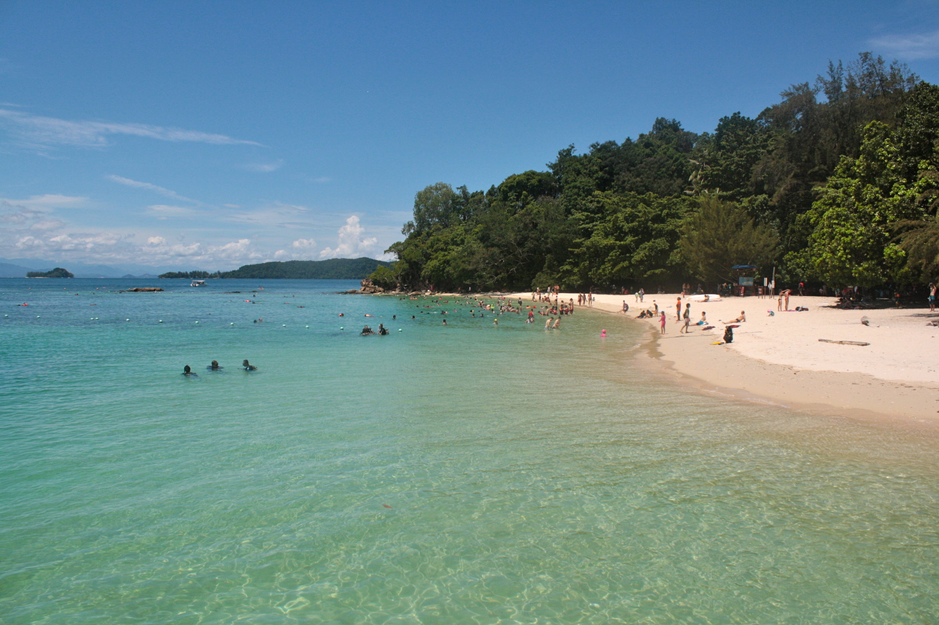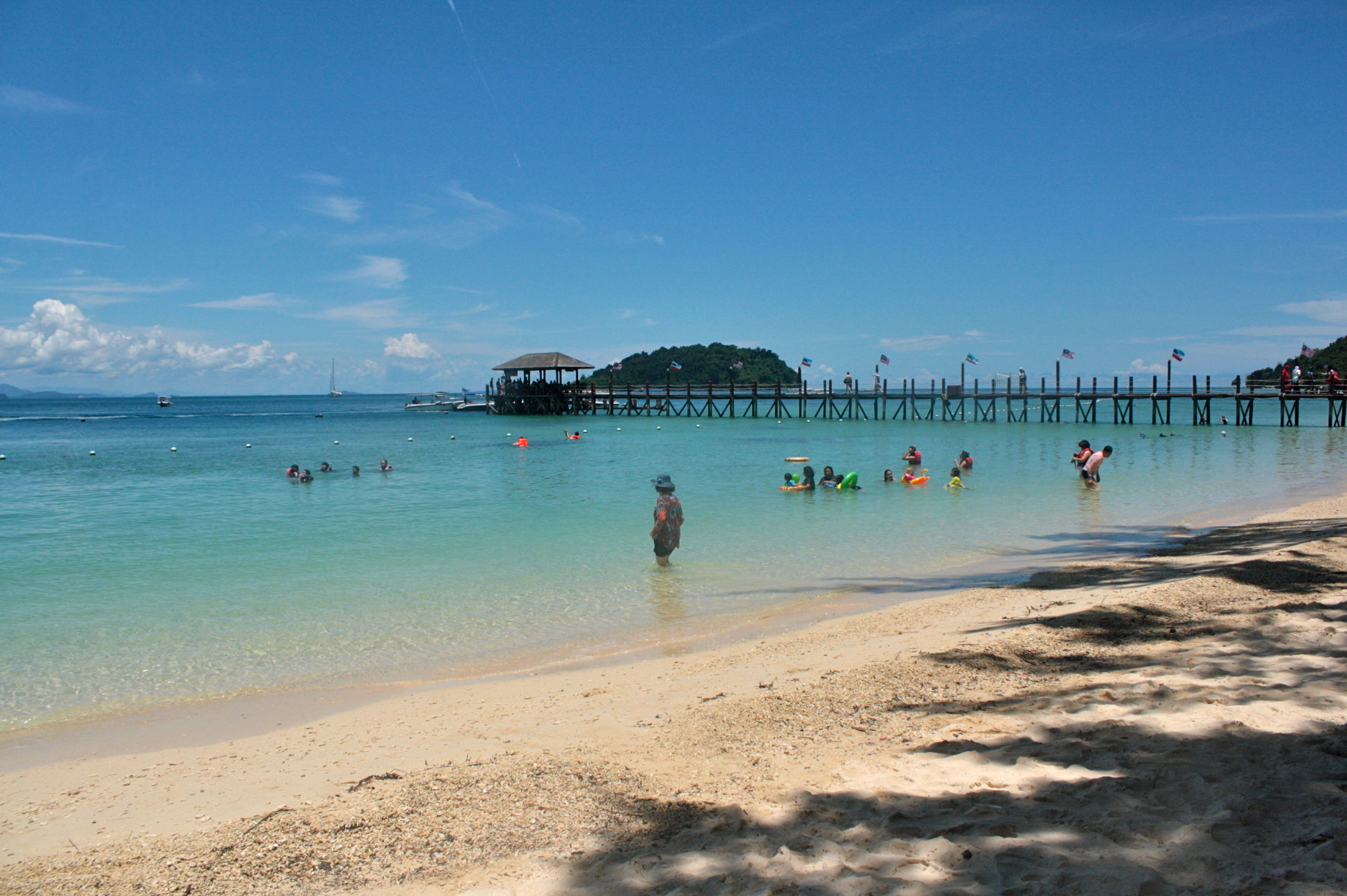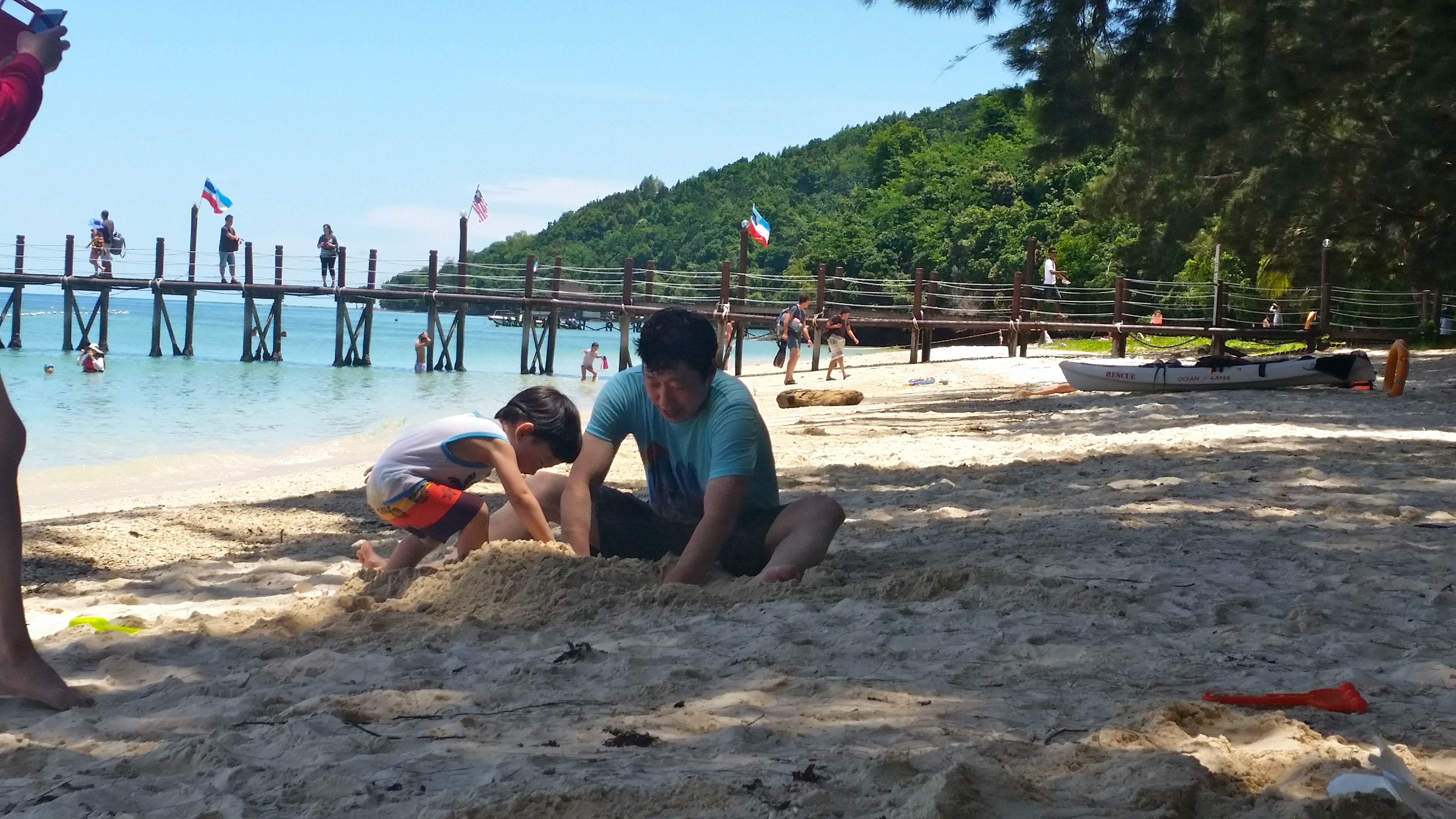 As expected, Tunku Abdul Rahman Park is still a tourist destination so while I prefer to be alone, I had to share beach with people and simply push my zone-out button. From the boat, I was with a group of locals who were so giddy they even asked me to take their picture with them. They comprised majority of our ferry’s passengers. It was just I and another solo traveler who I would later know to be an Indonesian (whose name I unfortunately forgot). Luckily, this big group had a different itinerary so I was left with the fellow solo traveler when we reached my first island destination. We had a quick chat on our way to the entrance. That was when I knew he was from Indonesia. He talked about their beaches there but I guess I was not paying much attention. I mainly remember his relaxed attitude about traveling – how he did not have anything set in his day and he just impulsively decided to try one of the beaches. Not a big deal, I suppose, since he came from a country with beautiful beaches, and it seemed to me that he is quite well-travelled. We parted ways and as usual, found my spot for lazy. Stayed for about 2 hours on each island – most of time pie spent on water, forever trying to figure out why water keeps on getting on my nose though I was wearing snorkeling mask and having those “tsk” moments whenever I spot a “barkada” of fish passing by just about when I was taking a break from all those water-inhaling. Took advantage of crowd too so spent quite some time people-watching – mostly kids being taught by their parents how to swim and well, those ‘guys’ who were wrestling!