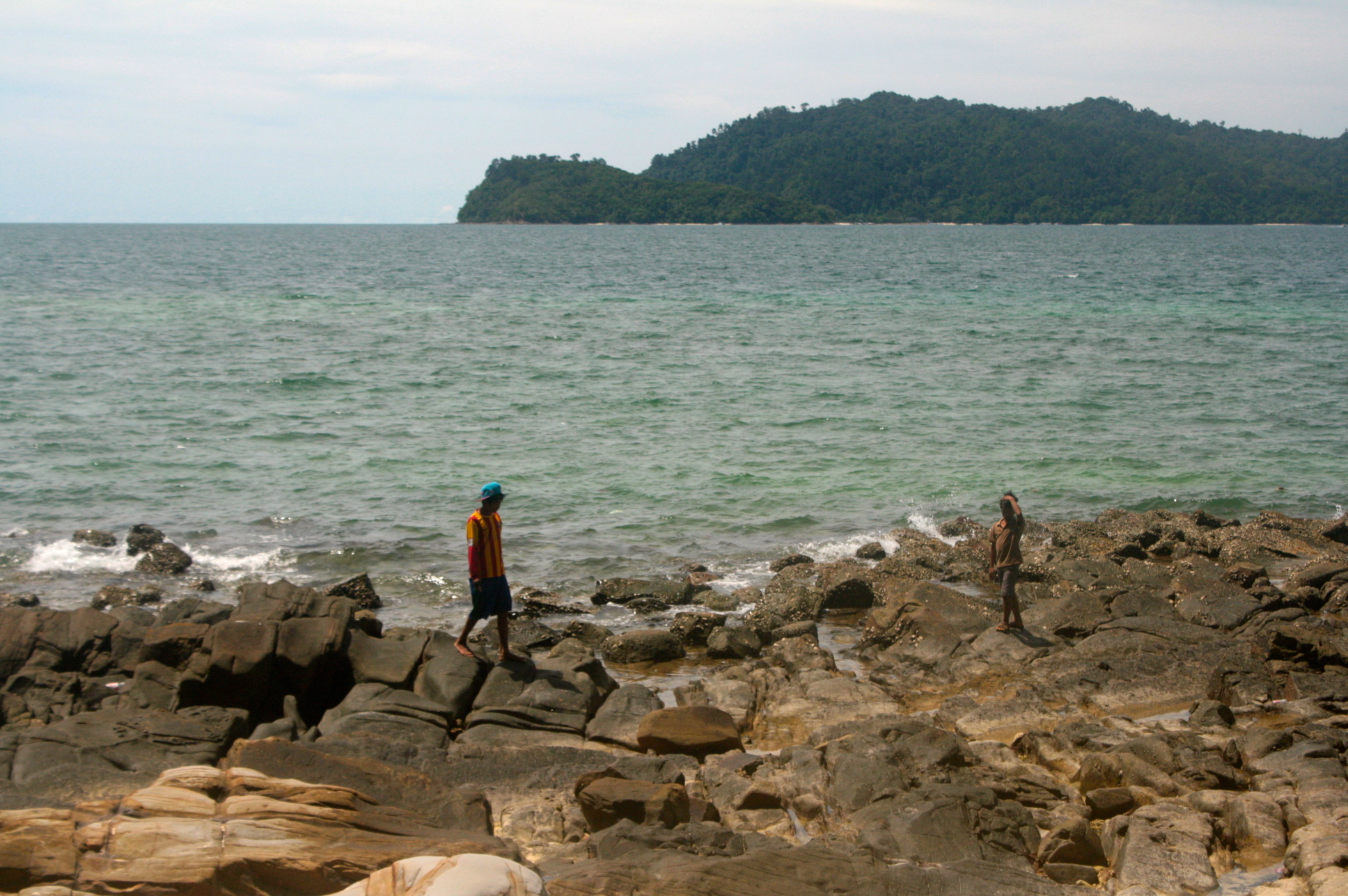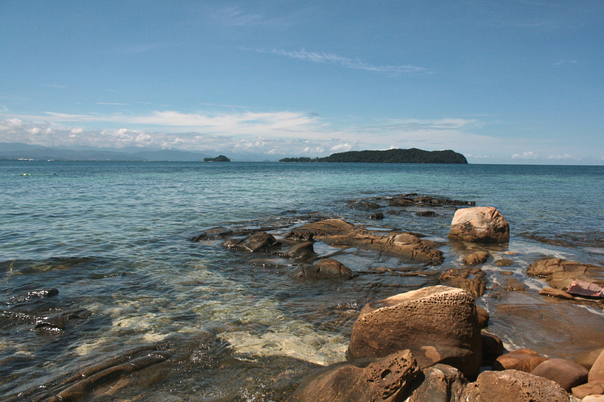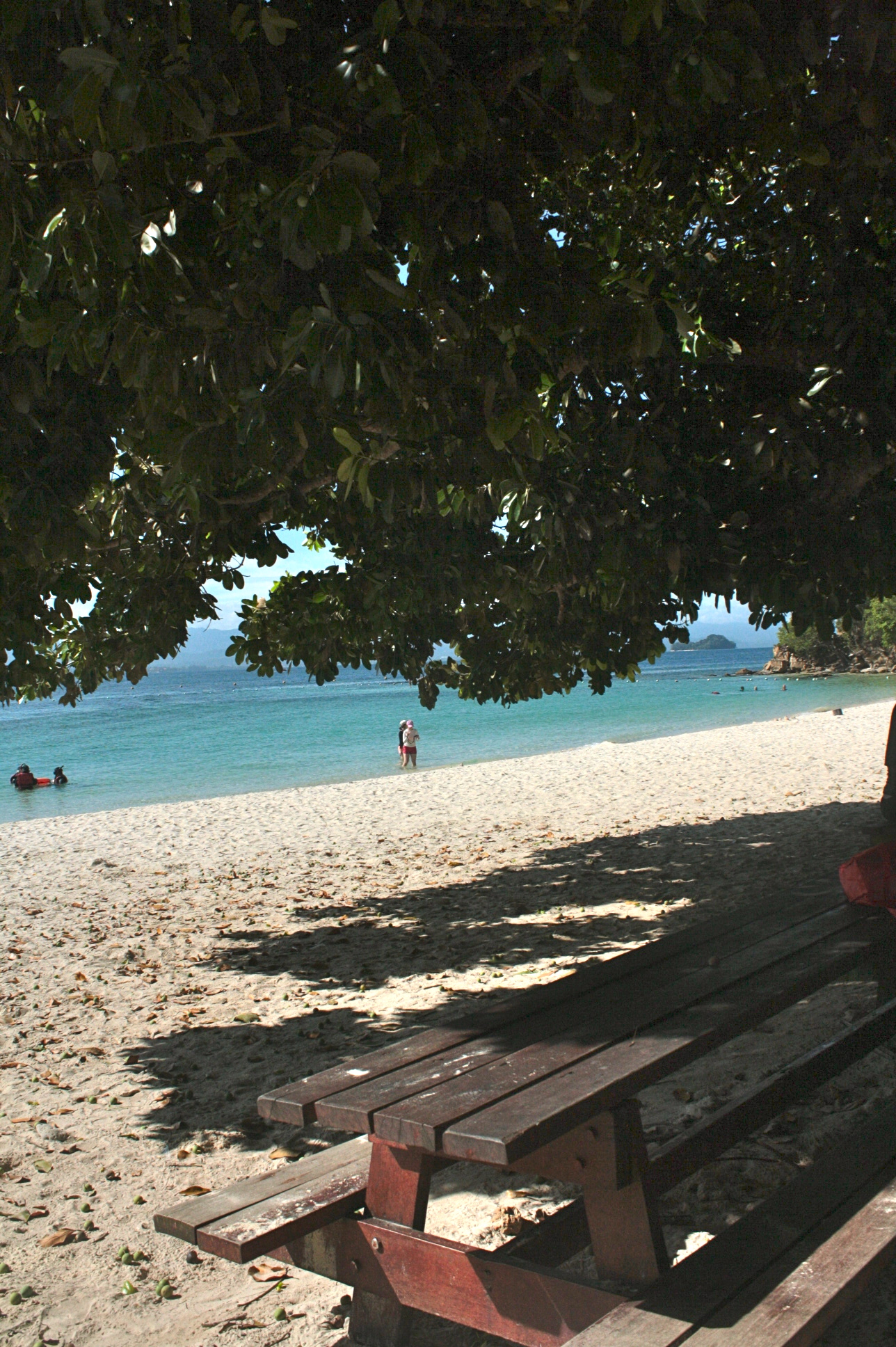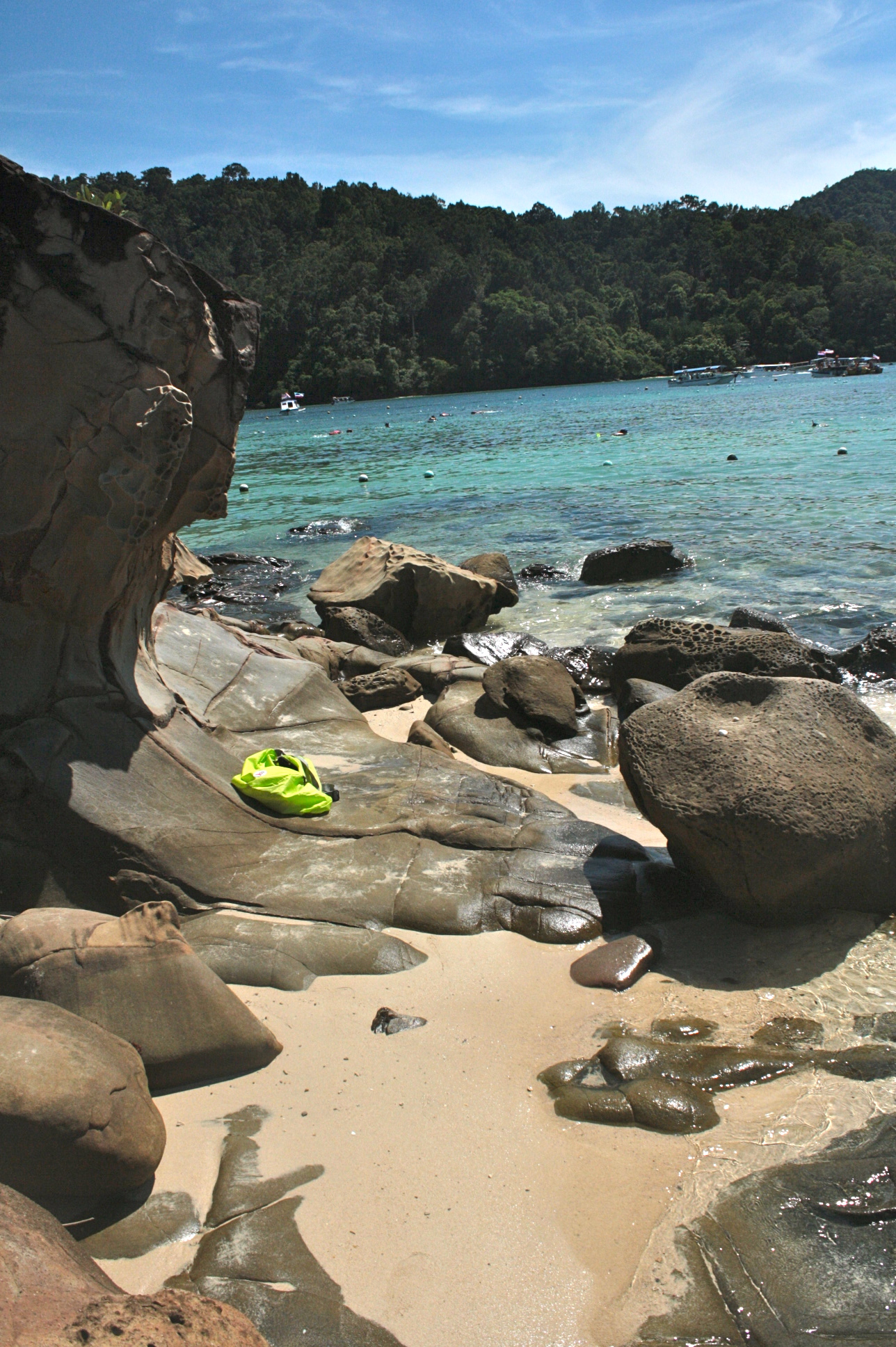 I couldn’t say which one is less crowded but I remember my attempts in both islands to find some spots away from the crowd. On the first one (Sapi Island), there were these rock formations which I tried to brave. A lifeguard approached me to remind to be careful because the rocks are slippery. Stayed some time there nonetheless but I was not brave enough to go further out. On the second, tried to go around the island and saw a version of the beach opposite the swimming area. Another rocky part of the beach so expectedly, people do not tend to flock.