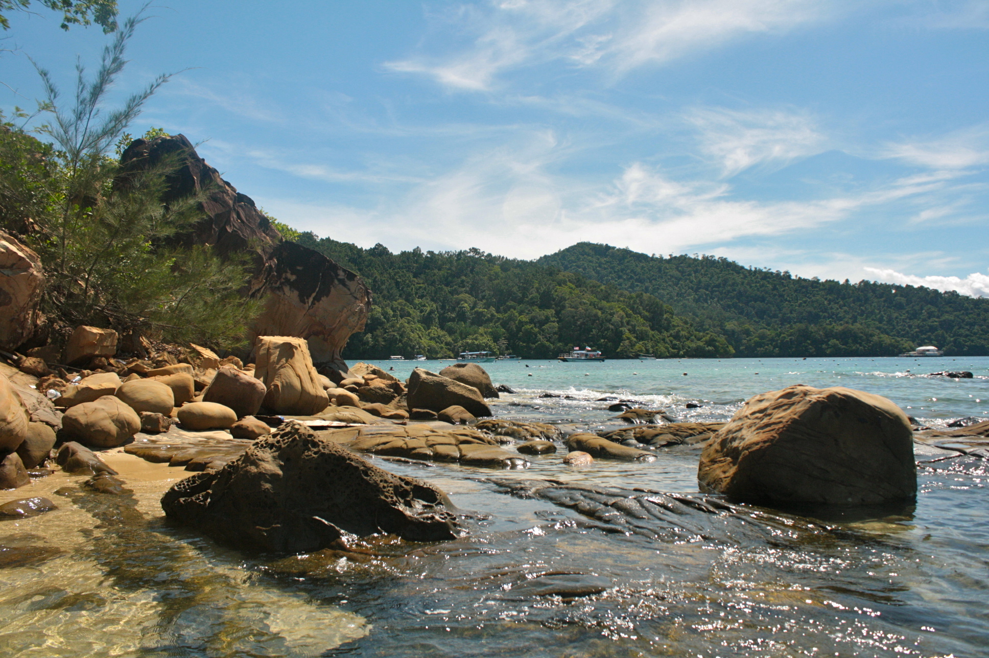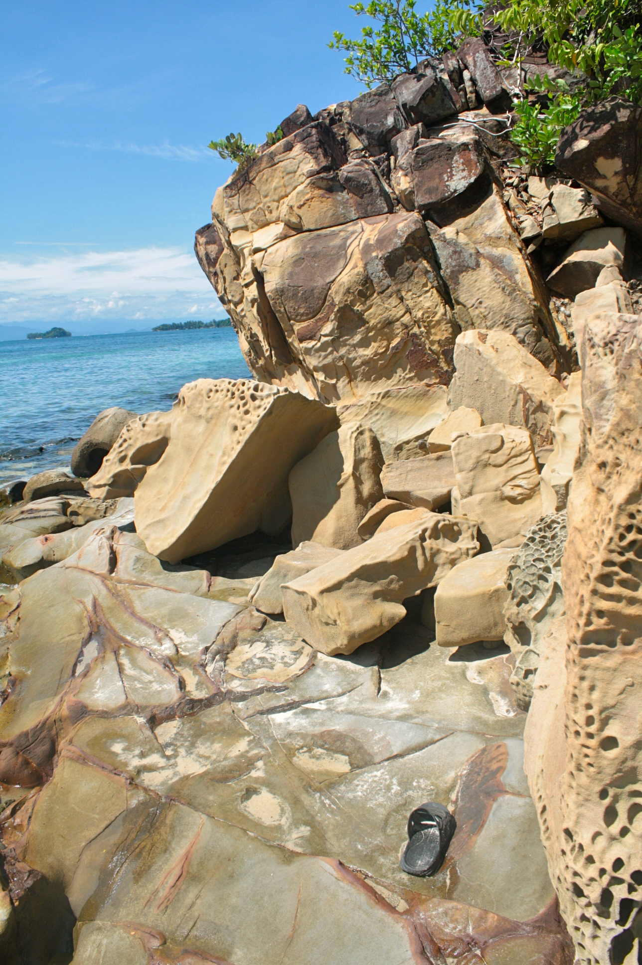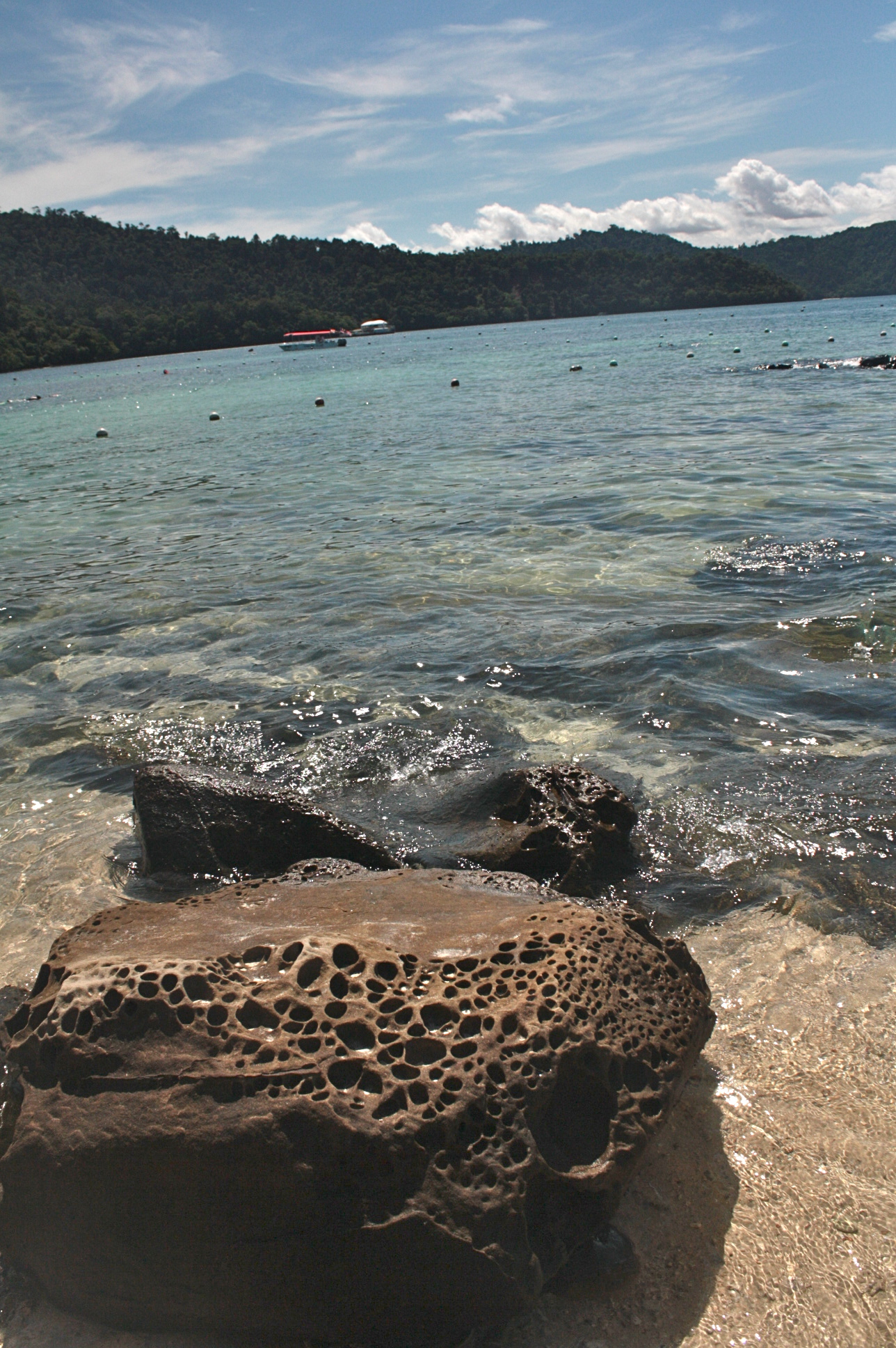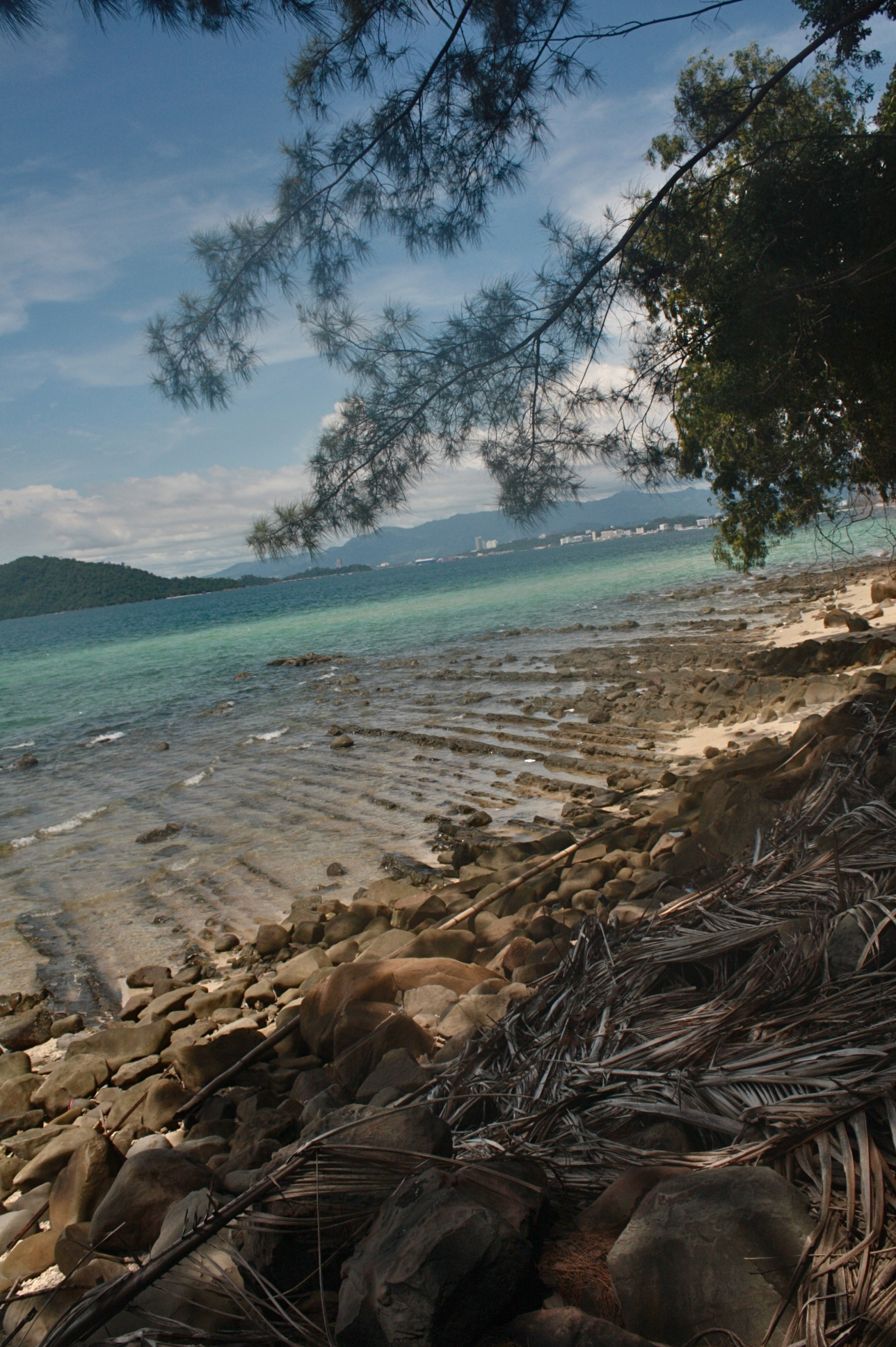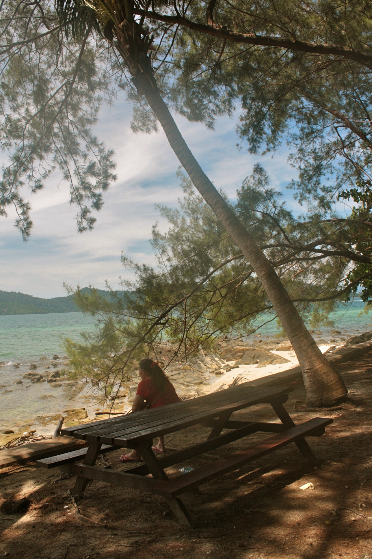 I couldn’t say which one is less crowded but I remember my attempts in both islands to find some spots away from the crowd. On the first one (Sapi Island), there were these rock formations which I tried to brave. A lifeguard approached me to remind to be careful because the rocks are slippery. Stayed some time there nonetheless but I was not brave enough to go further out. On the second, tried to go around the island and saw a version of the beach opposite the swimming area. Another rocky part of the beach so expectedly, people do not tend to flock.